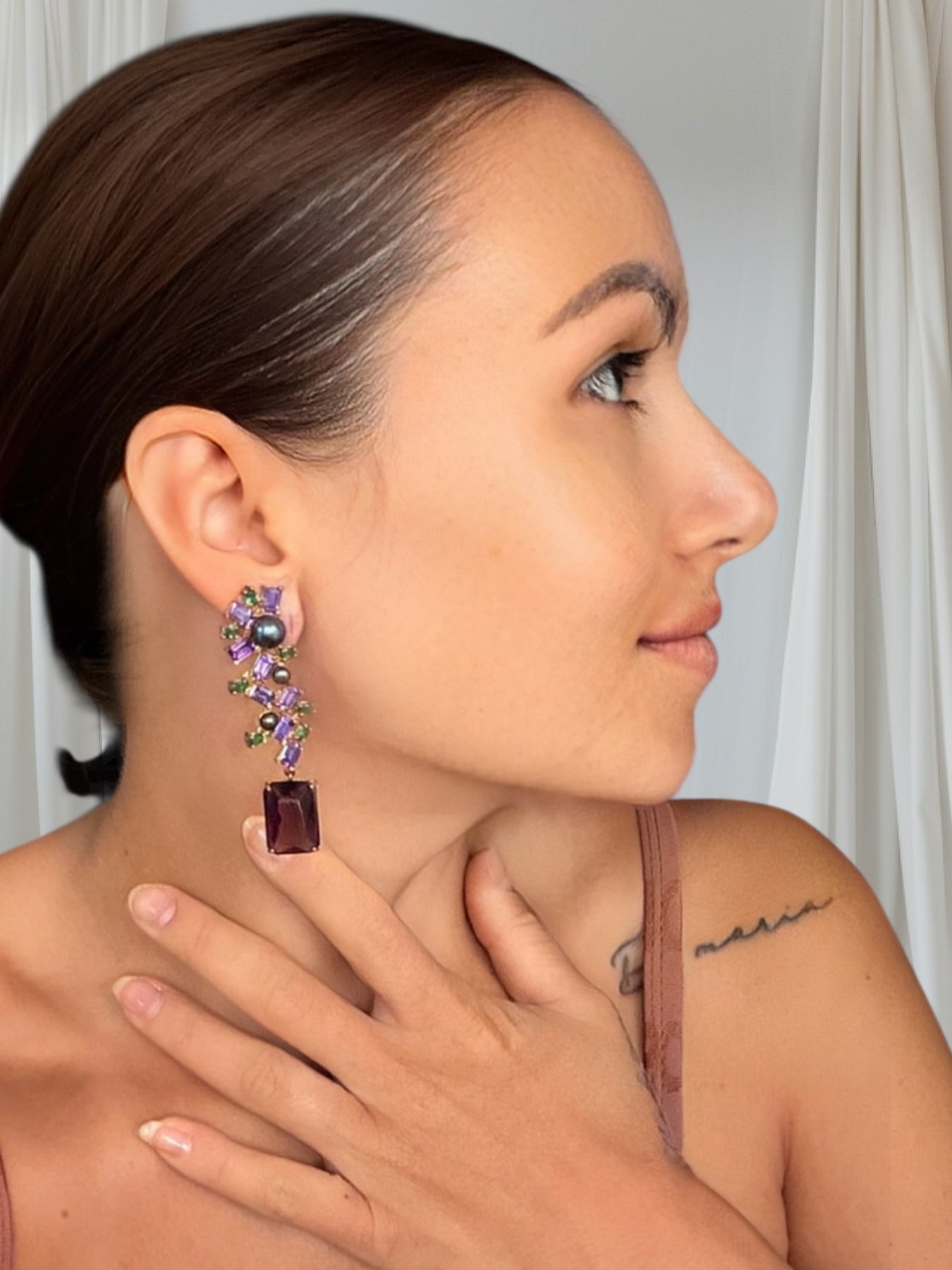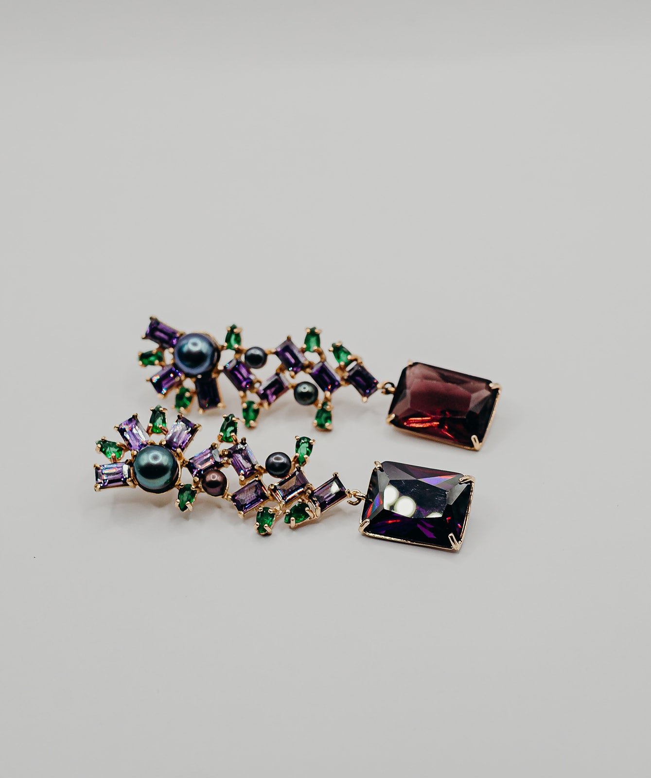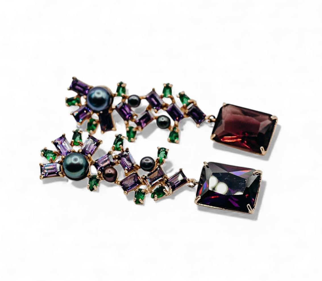 Wonderful earring in black gold bath with zirconias and natural pearls
