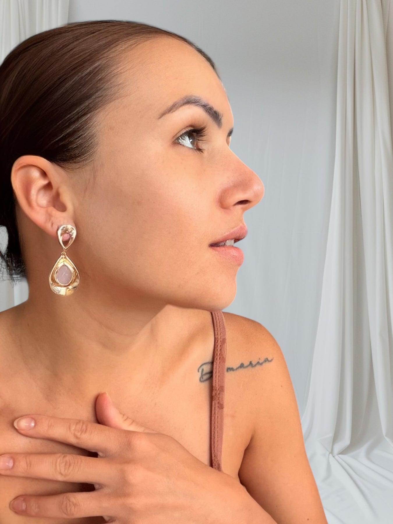 Wonderful earring in 18k gold bath with rose zirconia