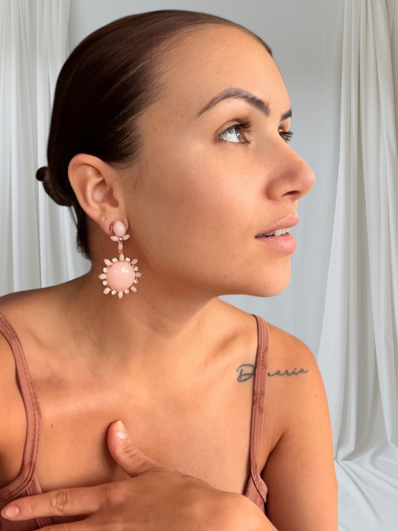 Enhanced with glimmering zirconias, these earrings radiate sophistication and charm. What truly sets them apart are the several light coral resin stones, adding a pop of color and a touch of playful whimsy to the design.