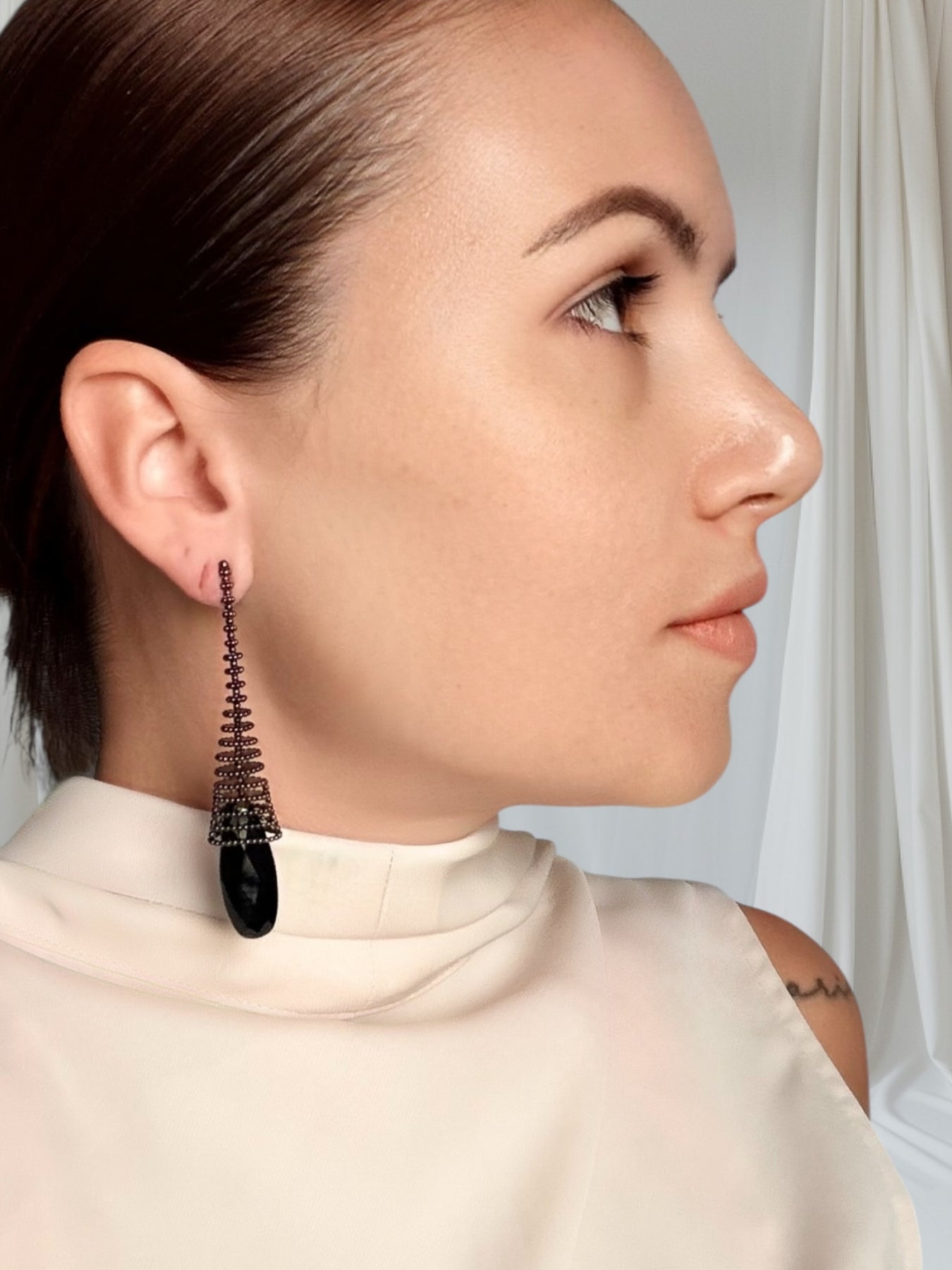 Ideal for both formal and evening wear, the Sabina earrings exude a sense of luxury and intrigue, making them a standout accessory for any occasion.